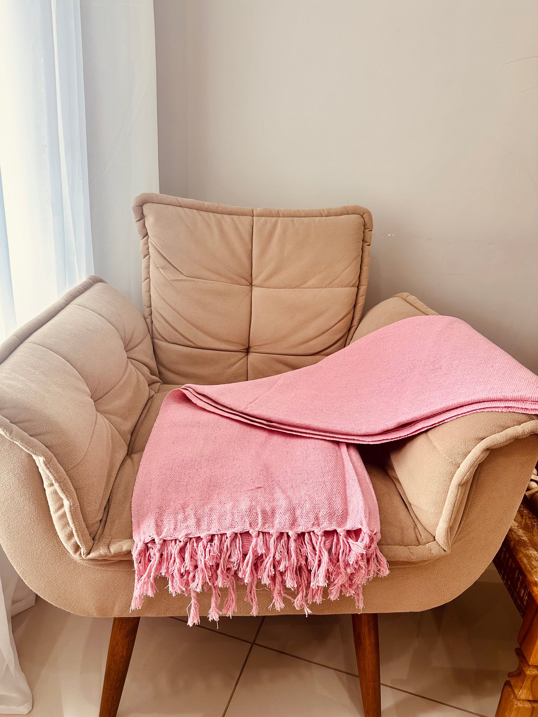 Manta para Sofá Básica Gigante Rosa Bebê 1,40x2,20m