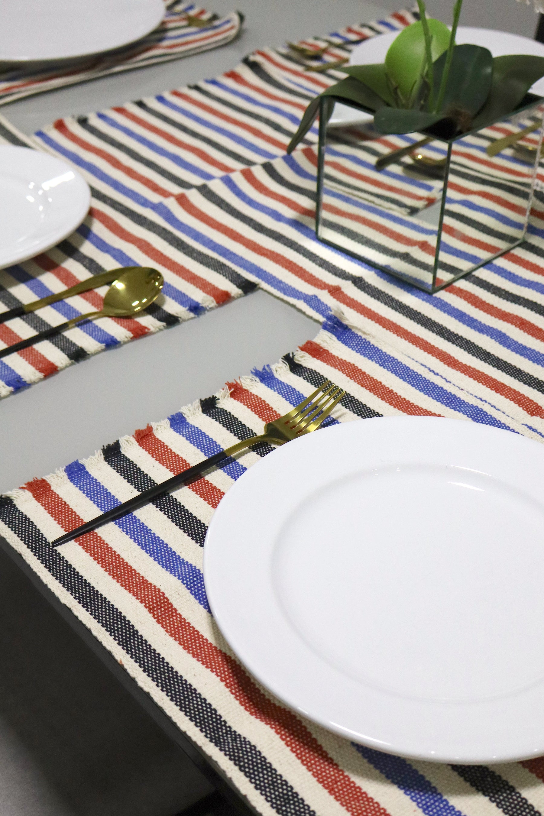 Jogo Americano Comum Listrado Azul, Preto e Vermelho 7 Peças