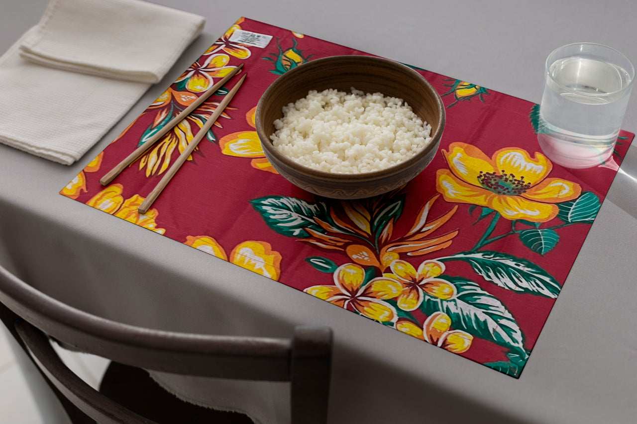 Jogo Americano Dupla Face Chita Vermelho 6 Peças
