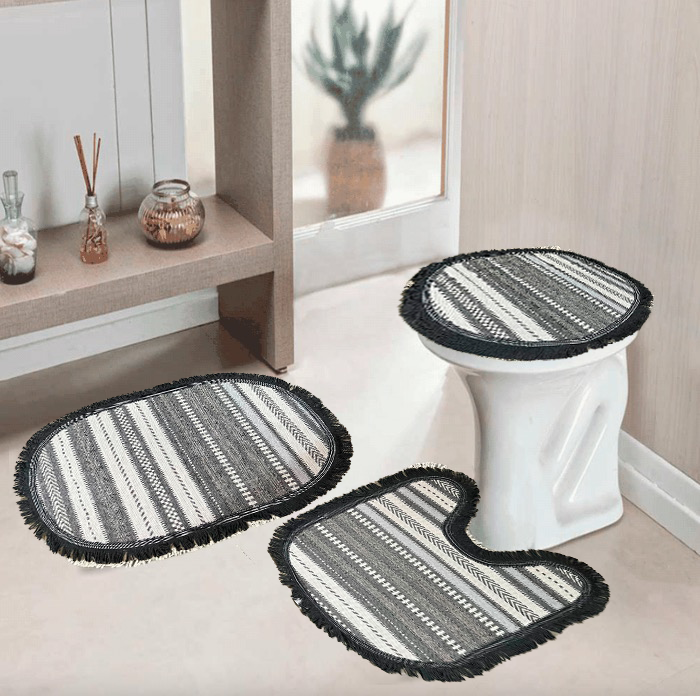 Além do design moderno o jogo de banheiro é feito com material que projeta mais resistência, fazendo com que você tenha um produto mais duradouro e mantendo a praticidade de ser um produto lavável e com secagem rápida.
