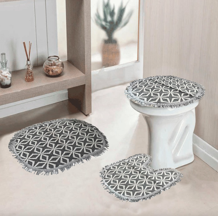 Além do design moderno o jogo de banheiro é feito com material que projeta mais resistência, fazendo com que você tenha um produto mais duradouro e mantendo a praticidade de ser um produto lavável e com secagem rápida.
