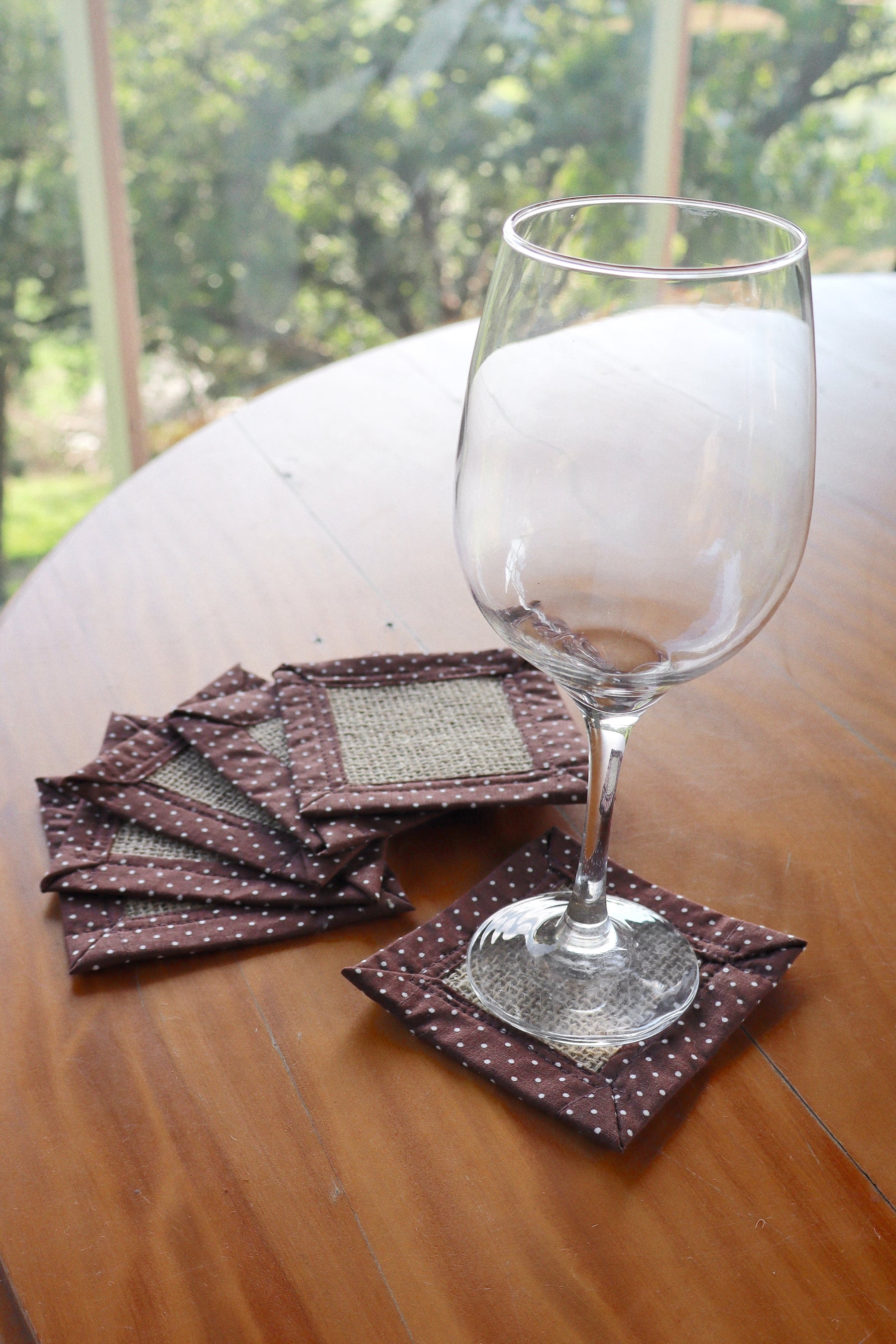 Kit 6 Porta Copos / Descanso Para Copos em Juta com Tricoline Poá Marrom