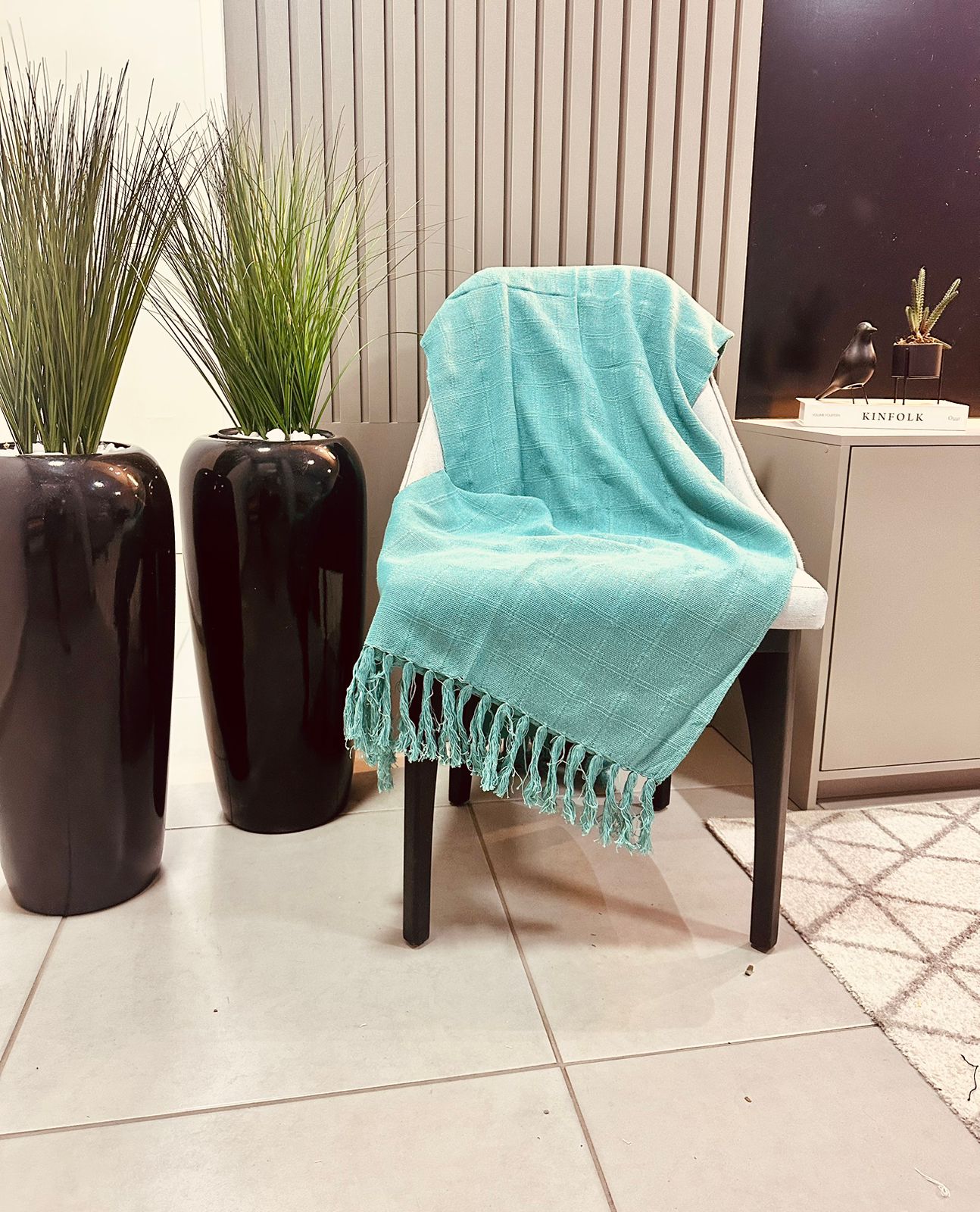 Manta para Sofá Algodão Verde Água Tifanny 1,20mx1,80m